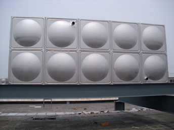 冲压不锈钢板焊接水箱采用不锈钢钢板冲压出加强筋,并用不锈钢焊接条整体焊接而成,结构简单,强度好,可制造较大容量的水箱。因箱体采用不锈钢板整体焊接,彻底遮断了太阳光的照射,所以不会滋生藻类。使水质始终保持清洁。